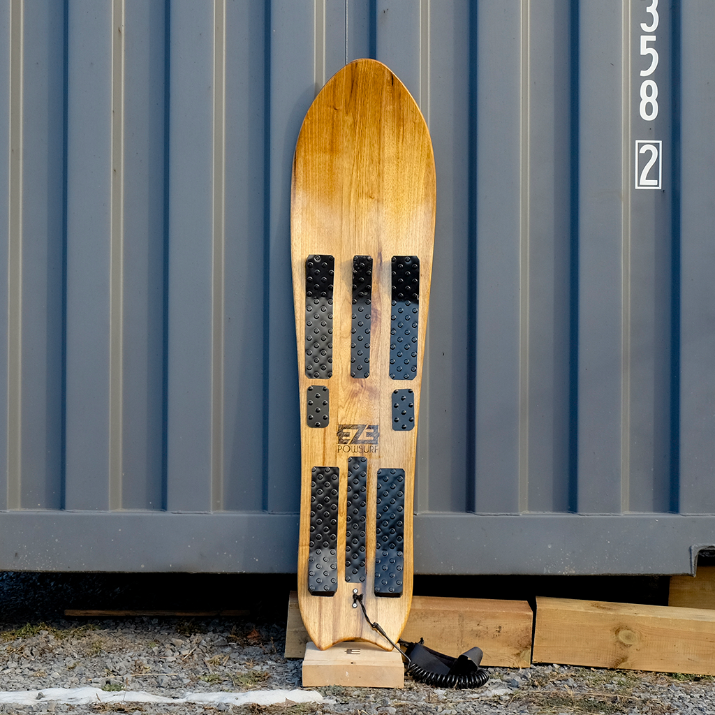 Each Eze powsurf is 100% handcrafted by Ezekiel, in a hidden woodshop at the bottom of Mont-Ste-Anne, Qc
